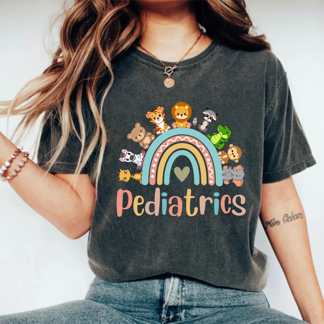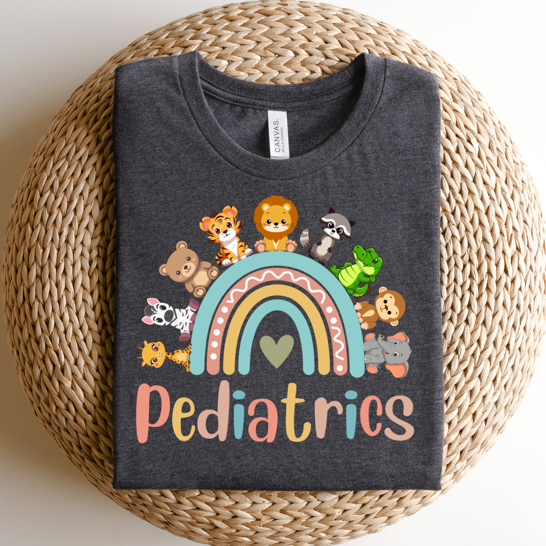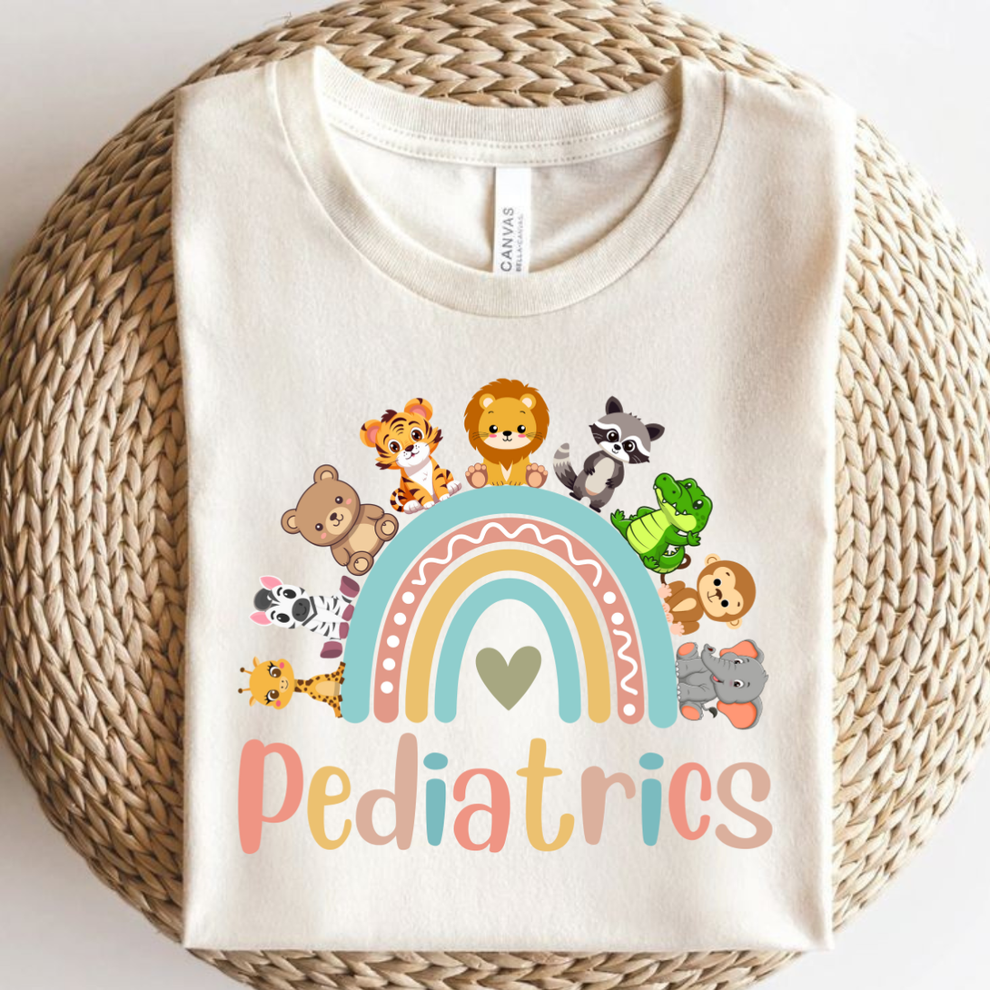 Spread joy and color with this Pediatric Nurse Cute Peds RN Rainbow Shirt, designed especially for pediatric nurses, pediatricians, and healthcare heroes who care for little patients with big hearts. Featuring a charming rainbow and cute animal-inspired design, this tee adds a cheerful touch to your workday or casual wear. Perfect for pediatric units, nurse teams, or thoughtful nurse gifts during any season.