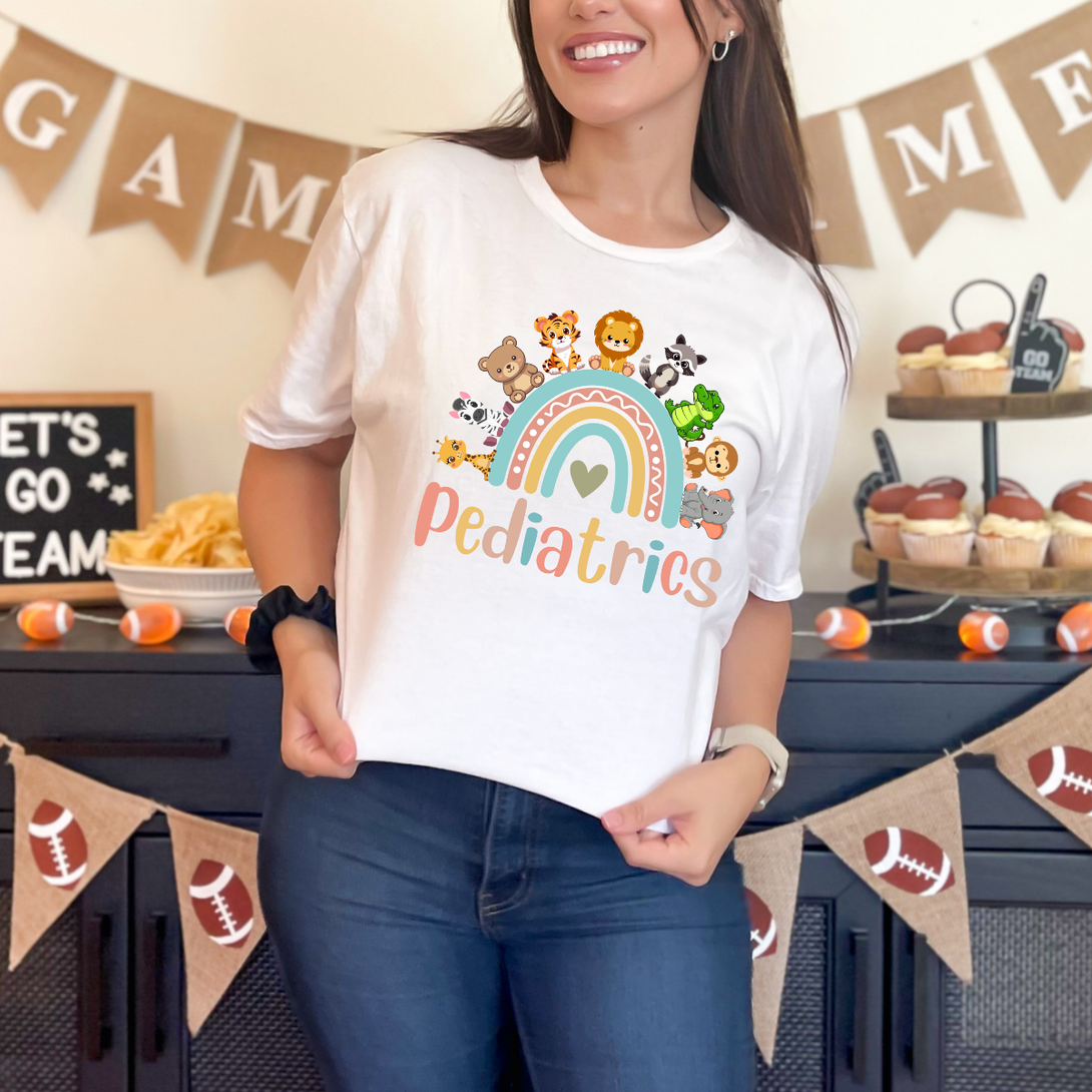 Pediatric Nurse Cute Peds Rn Pediatrician Animals Rainbow Nursing shirt